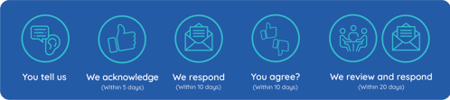We understand that complaints are a valuable form of customer feedback. Our aim is to resolve complaints quickly, and to use the data and learning from complaints to improve our services.